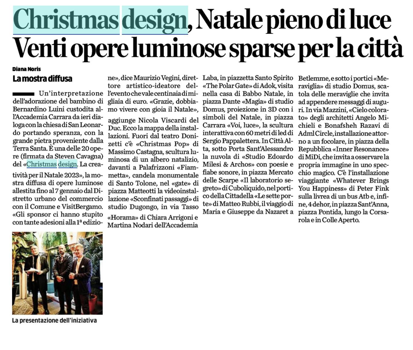 Christmas design, Natale pieno di luce Venti opere luminose sparse per la città