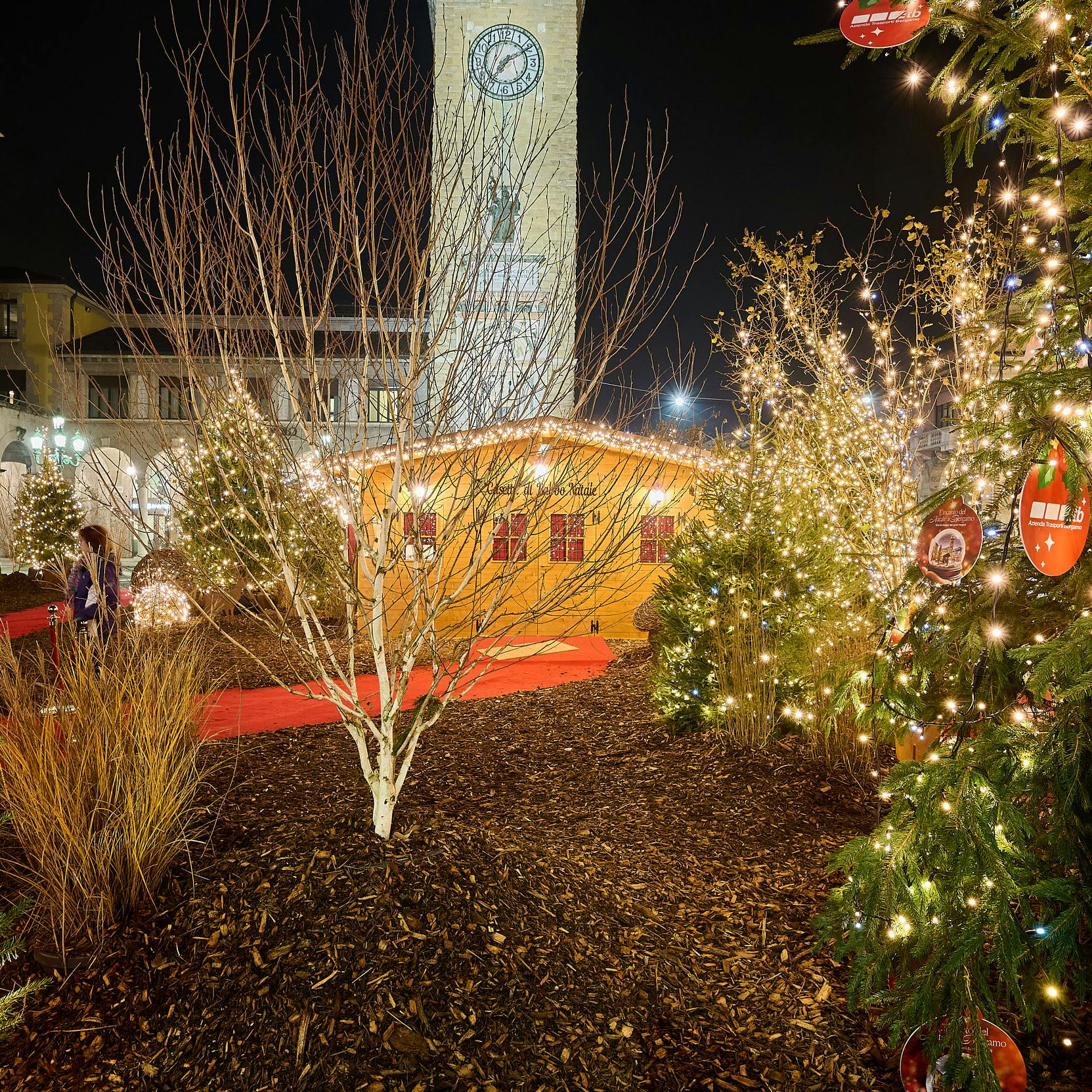 Il Bosco di Natale è un'area dedicata alle famiglie e ai bambini che vogliono incontrare Babbo Natale. Qui il Natale dedicato ai più piccoli è sinonimo di tradizione, gioia, magia, speranza, attesa, lucine d’atmosfera e ricordi d'infanzia che anche gli adulti si portano sempre nel cuore. I visitatori camminano su cippato naturale che profuma di legno e amplifica l’effetto bosco, insieme a graminacee alte che trasformano la visita in un’esperienza immersiva. La casetta di Babbo Natale è circondata da un boschetto di betulle, abeti e noccioli, popolato da sagome a forma di renna. Tra le altre sorprese del bosco fatato, le sfere, i grandi funghi e i manufatti in salici intrecciati da Davide Gotti, fino al grande albero di Natale sponsorizzato da ATB. Il bosco è rappresentato come un giardino chiuso da uno steccato per delineare i contorni di uno spazio dall’atmosfera magica, diverso da tutto il mondo fuori: una stanza verde che racconta una favola, trasformando piazza Vittorio Veneto nel ......