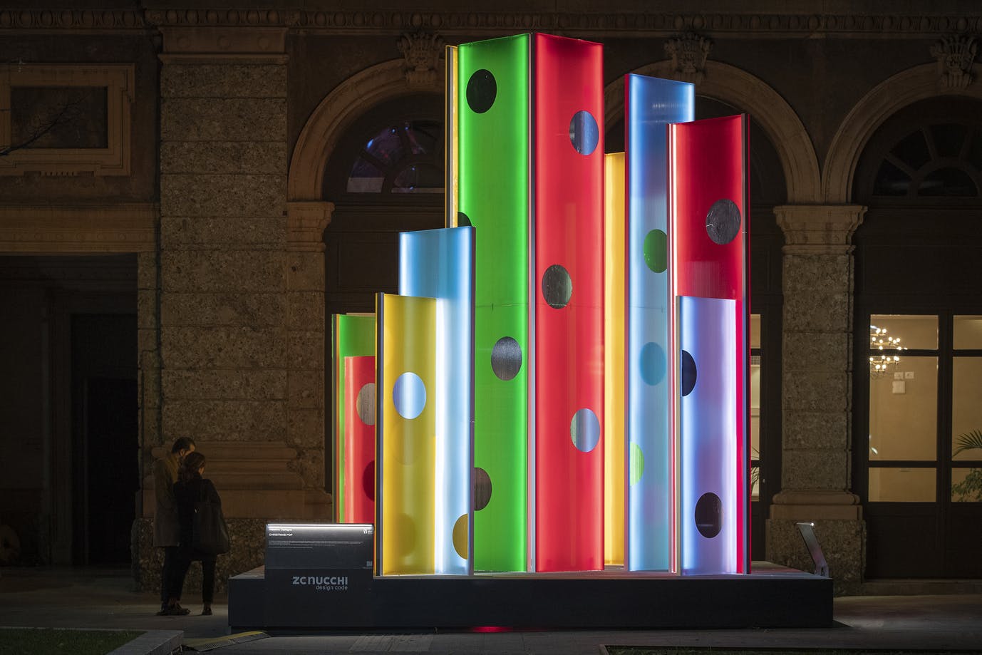 Christmas Pop è un’installazione interattiva concepita per essere un albero natalizio non convenzionale, che proietta luci e giochi di ombre colorate sulle architetture del Teatro Donizetti e del “Sentierone”, nel cuore di Bergamo Bassa. Nessun riferimento esplicito alle forme di un vero albero: parliamo di un’opera costituita di architetture in plexiglass trasparente che richiamano le vette delle Dolomiti, ma anche lo skyline di Bergamo Alta; l’opera si anima di sera grazie ai giochi di luce. I fari direzionati verso le “lame” trasparenti, uniti alle ombre delle persone che attraverseranno l’opera, creeranno nell’intorno insolite acrobazie luminose. ...