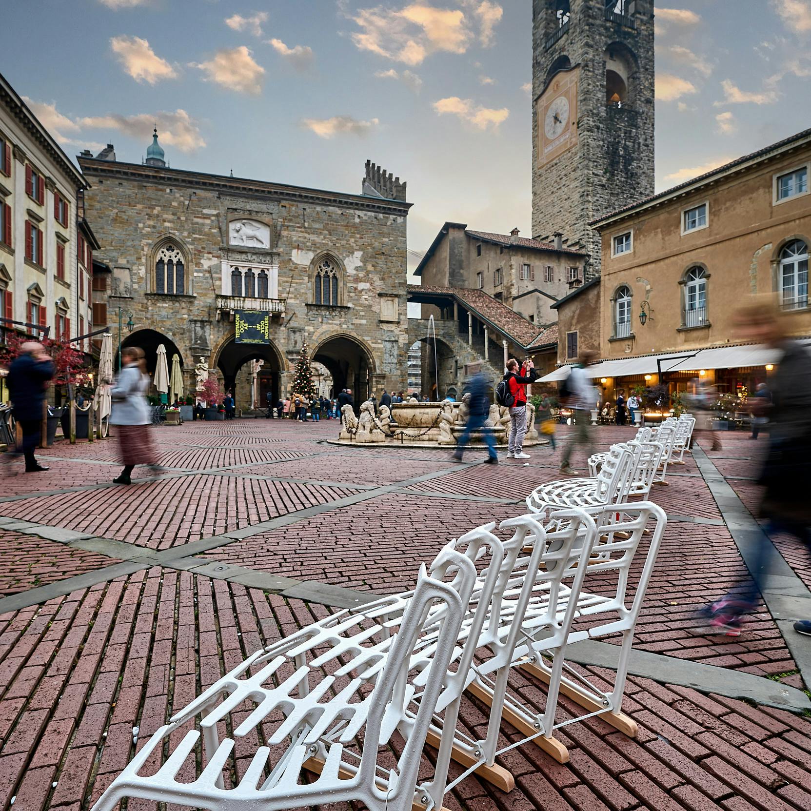 Nel periodo di Natale, e fino ai giorni dell’anno nuovo, Piazza Vecchia, simbolo di Bergamo, è illuminata da una luce particolare. In questi giorni dell’anno, l’estensione dell’ombra proiettata dai palazzi sulla piazza è massima e il soleggiamento, invece, è minimo, in concomitanza con il solstizio d’inverno (21 dicembre). Grazie al movimento quotidiano del sole intorno alla terra, l’installazione Extasis Solis, realizzata con delle panche Ghisa, disegnate da Riccardo Blumer con Matteo Borghi e Adrian Freire e prodotte da Alias nel 2008, segnerà dieci posizioni tra sole e ombra dalle 11:45 alle 14:00 nei giorni più prossimi al solstizio d’inverno, ogni 15 minuti. Le panche, posizionate in sequenza secondo la progressione oraria, segneranno l’angolo soleggiato proiettato sulla piazza dalla differenza di altezza di Palazzo della Ragione e i corpi est della piazza stessa. Le 10 panche, che nei giorni di sole saranno alternativamente esposte alla luce, diventano una grande meridiana che se......