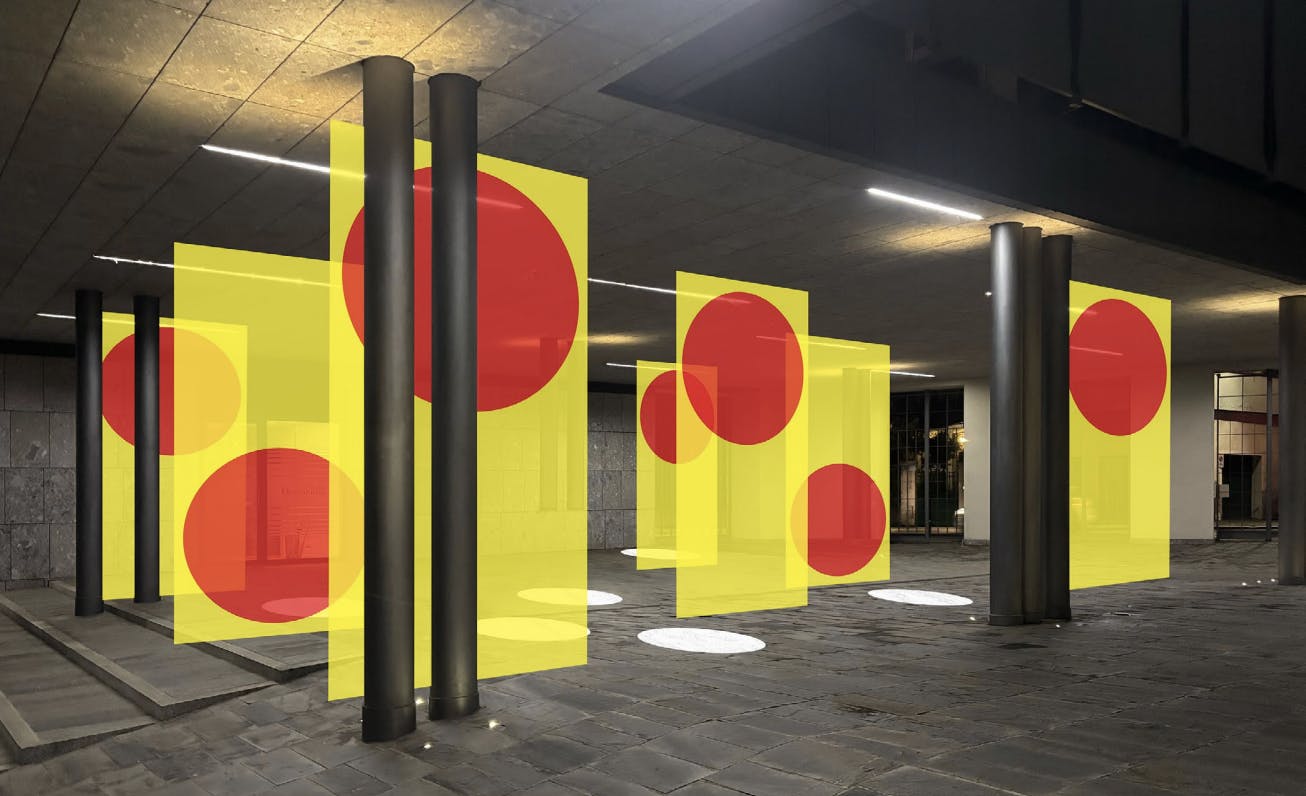 Un tripudio di quinte scenografiche che cadono a piombo dal soffitto nel cortile coperto del passaggio pedonale di via Mazzini, 4 invita a superare il cancello e a liberare la fantasia. L'installazione immersiva Play, sposa appieno il tema "Il Palcoscenico dell'immaginazione" architettando un universo parallelo fatto di colore e di luce. Le bandiere sono un richiamo ai tendaggi del teatro: l’elemento che solitamente divide il palcoscenico dagli spettatori. In Play, tuttavia, viene scomposta tale disposizione canonica. Abbattendo questo confine, l’opera diventa una scenografia dove attori e spettatori sono la stessa cosa, impersonano lo stesso ruolo. lI titolo stesso Play ha una doppia accezione. Play è un riferimento al teatro - perché play in inglese è l'opera teatrale - ma anche un invito al gioco; il verbo to play si traduce in giocare. L'aspetto ludico è rappresentato tramite l’uso di forme semplici ed evocative e segni forti come il cerchio e il rettangolo, colori accesi e una di......